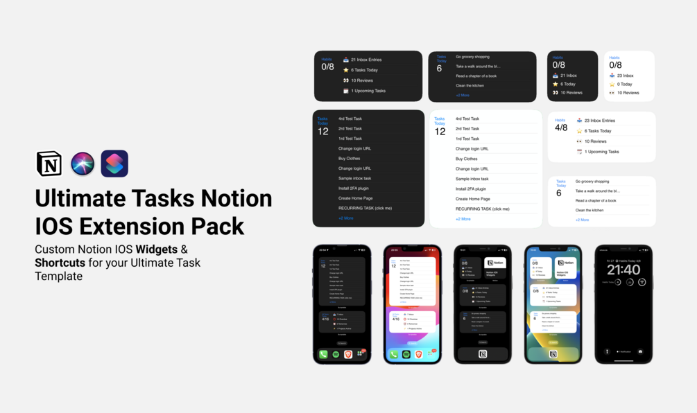 Unleash the full potential of your Notion workspace with the Ultimate Tasks (Thomas Frank) iOS Extension Pack - the perfect complement to Thomas Frank's renowned task management template (Download his template here!). This powerful extension pack enhances your iOS Notion experience by seamlessly integrating widgets and shortcuts into your workflow.